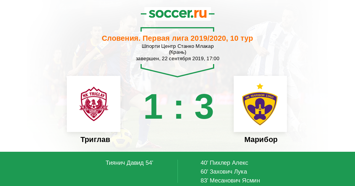 Триглав - Марибор: обзор матча 22 сентября 2019
