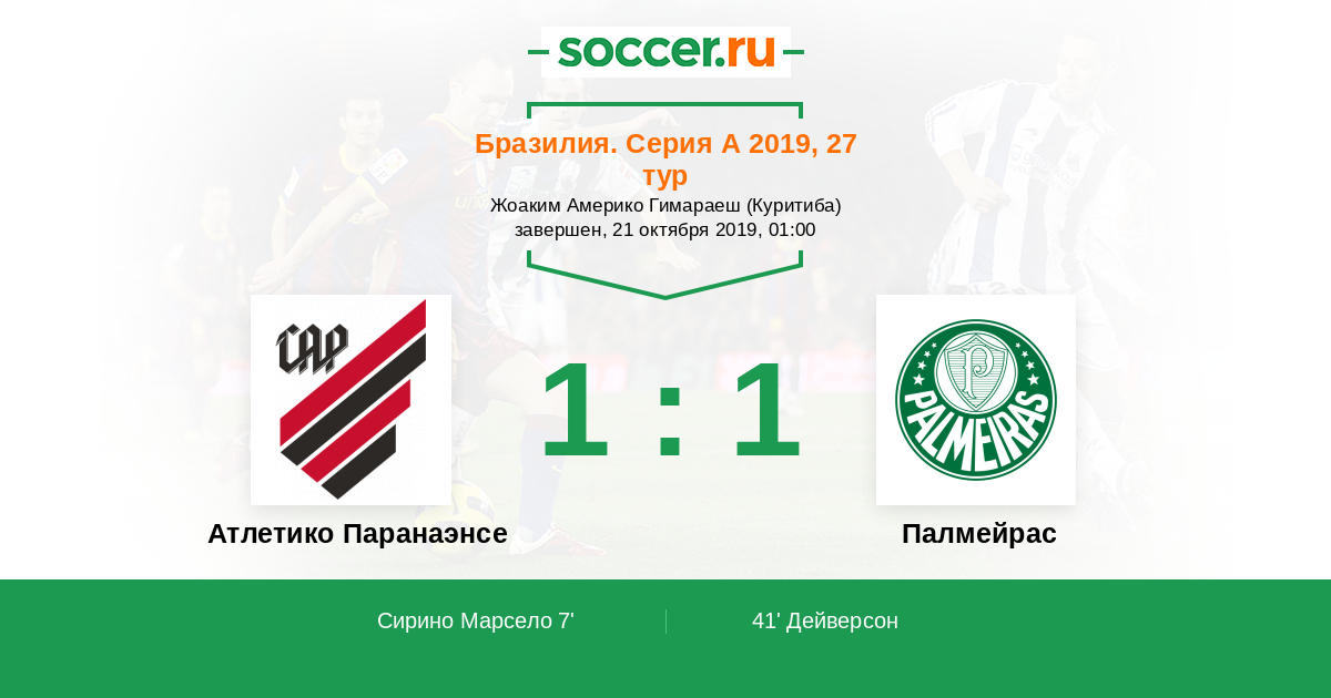 Атлетико Паранаэнсе - Палмейрас: обзор матча 21 октября 2019