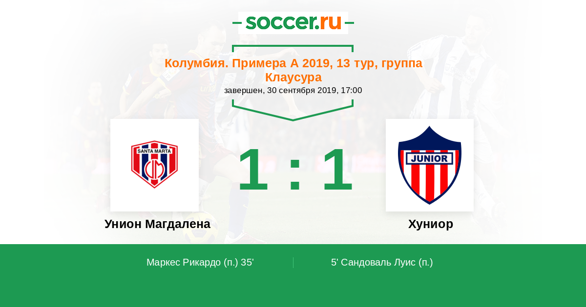 Унион Магдалена - Хуниор: обзор матча 30 сентября 2019