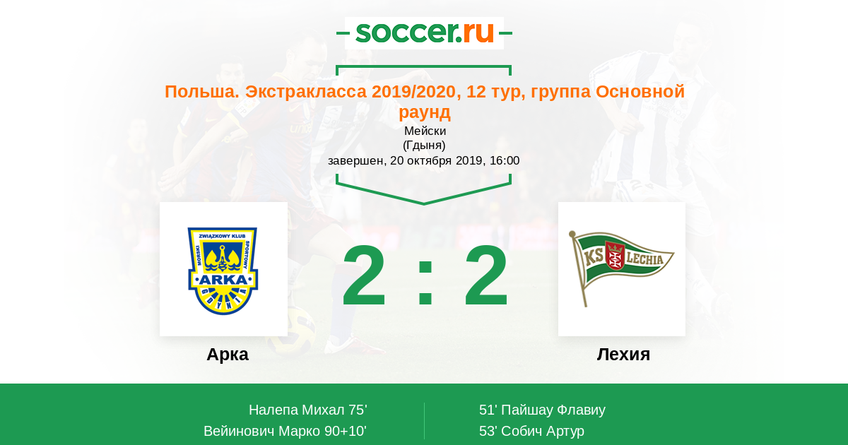 Арка - Лехия: обзор матча 20 октября 2019