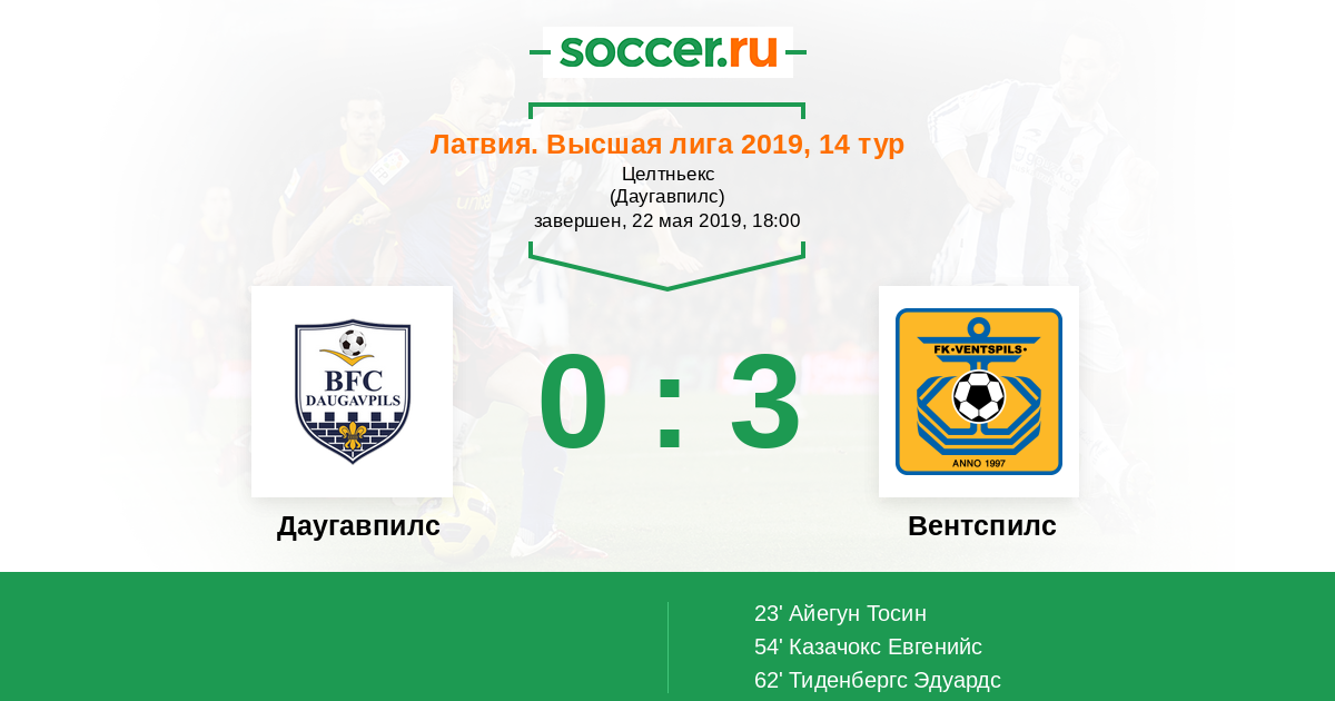 Даугавпилс - Вентспилс: обзор матча 22 мая 2019