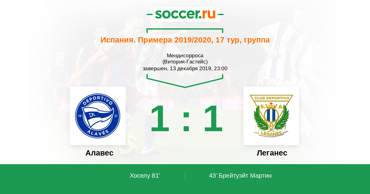 Алавес - Леганес: обзор матча 13 декабря 2019