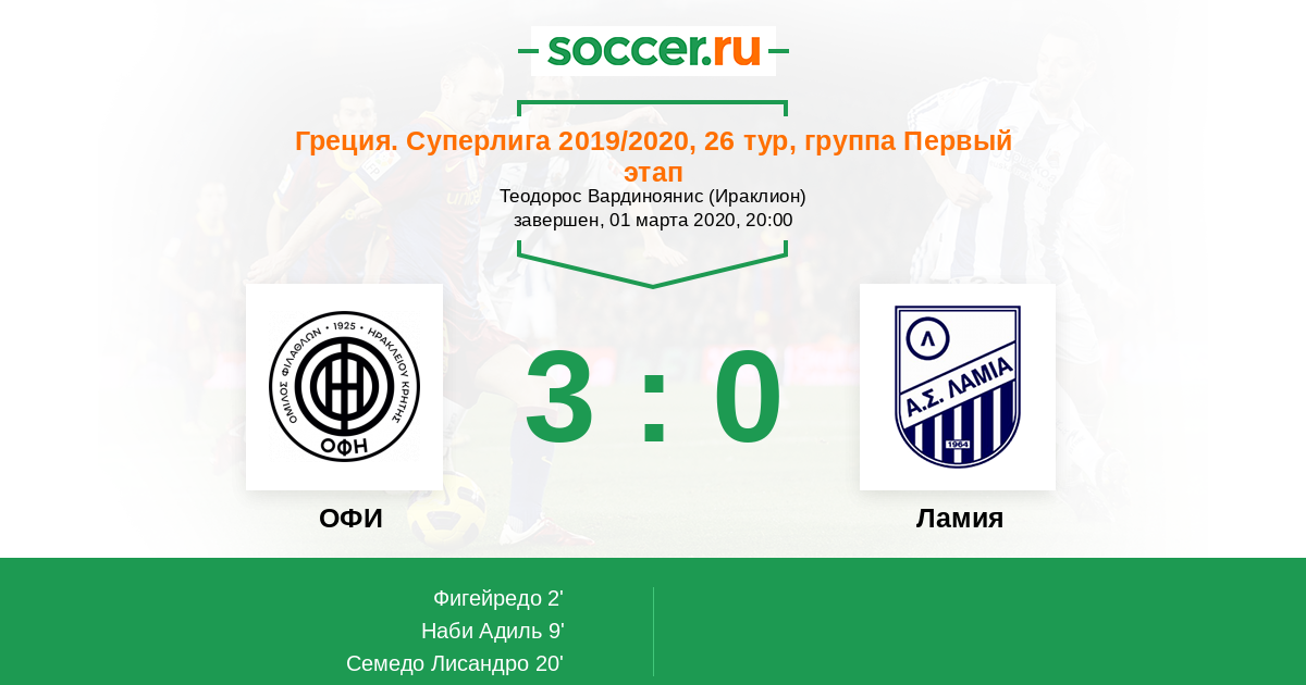 ОФИ - Ламия: обзор матча 1 марта 2020