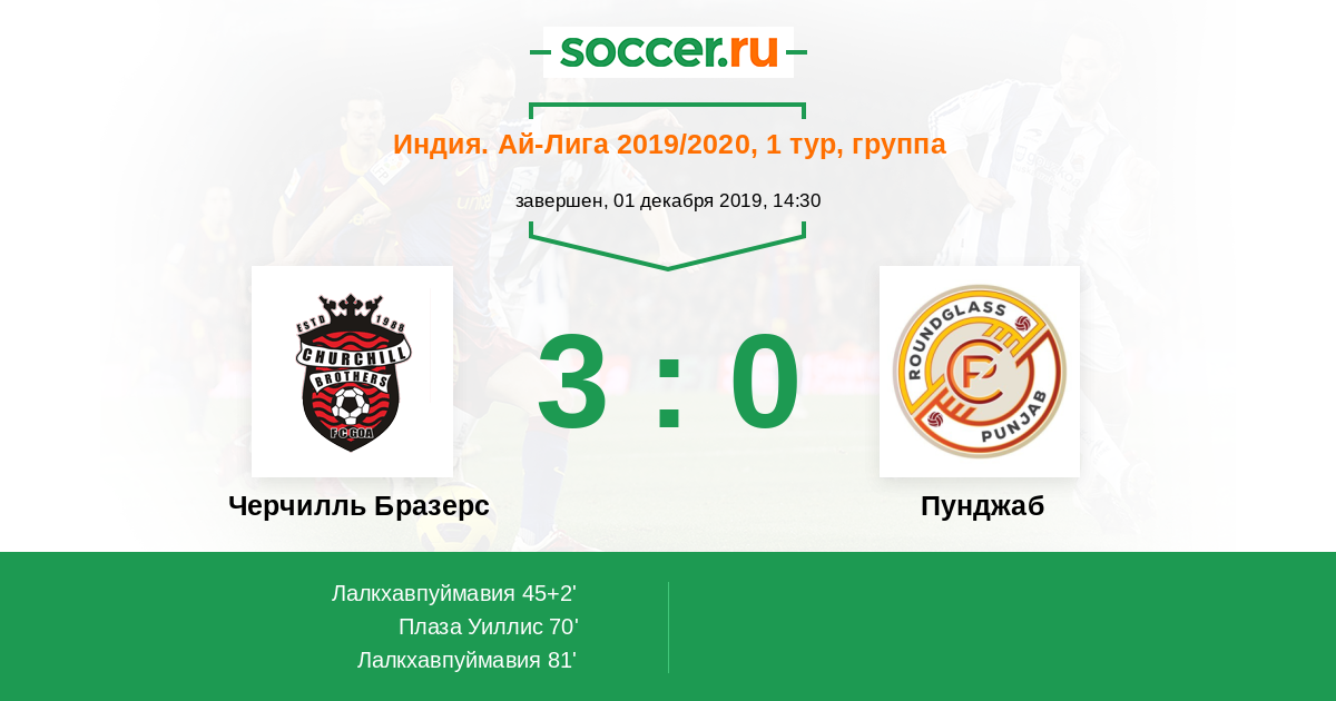 Черчилль Бразерс - Пунджаб: обзор матча 1 декабря 2019