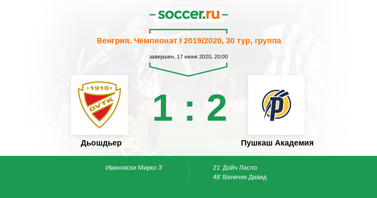 Дьошдьер - Пушкаш Академия: обзор матча 17 июня 2020
