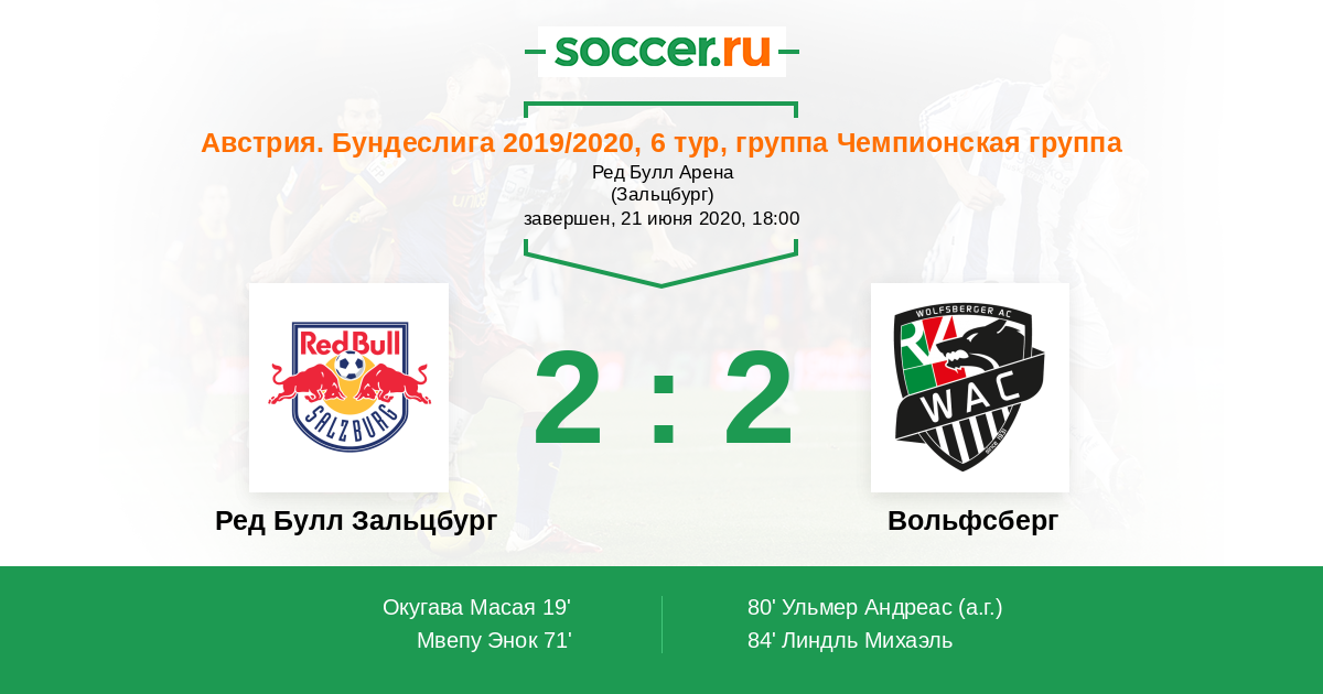 Ред Булл Зальцбург - Вольфсберг: обзор матча 21 июня 2020