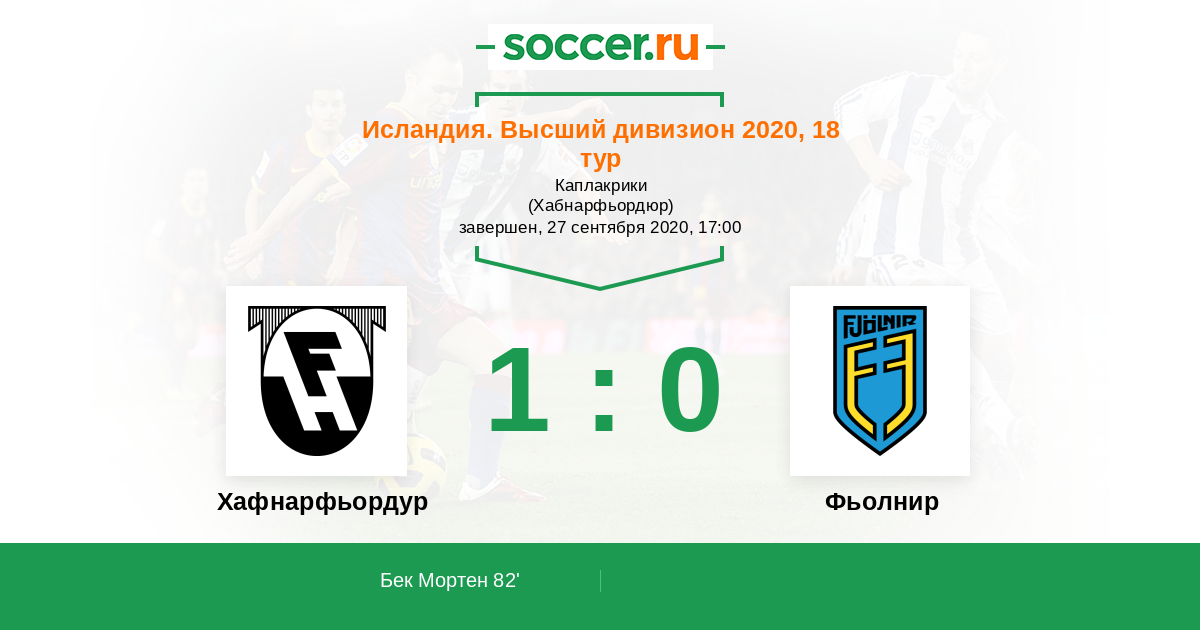 Хафнарфьордур - Фьолнир: обзор матча 27 сентября 2020
