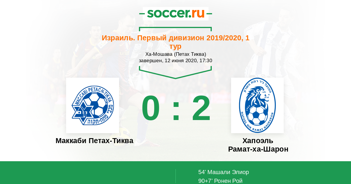 Маккаби Петах-Тиква - Хапоэль Рамат-ха-Шарон: обзор матча 12 июня 2020