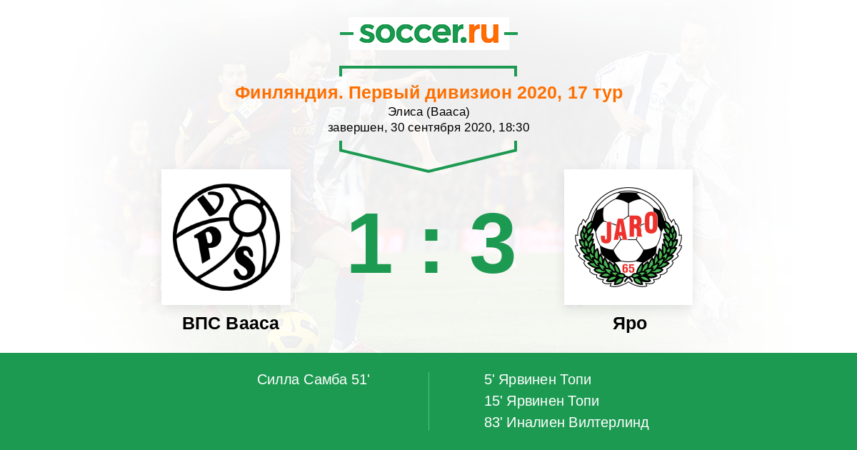 ВПС Вааса - Яро: обзор матча 30 сентября 2020
