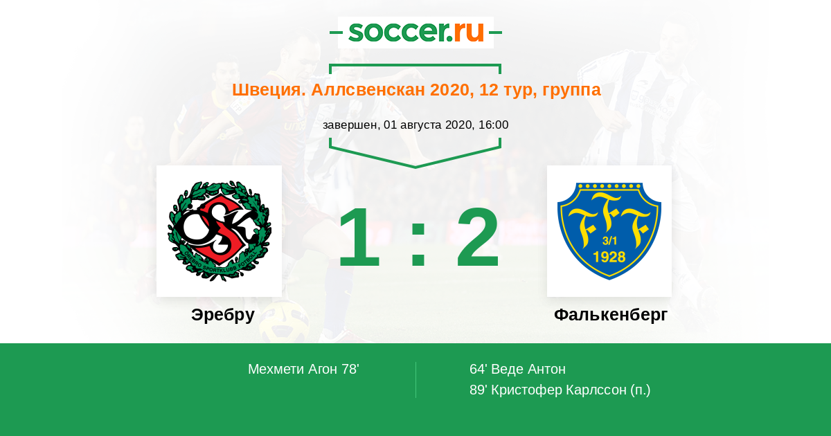 Эребру - Фалькенберг: обзор матча 1 августа 2020