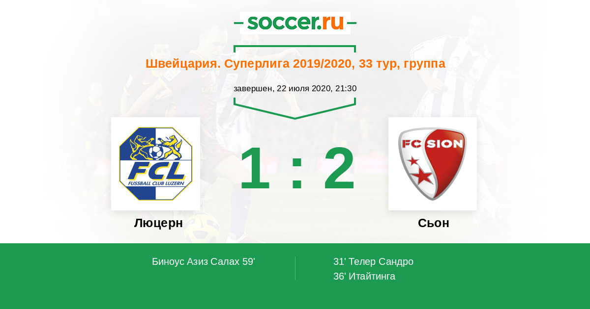 Люцерн - Сьон: обзор матча 22 июля 2020