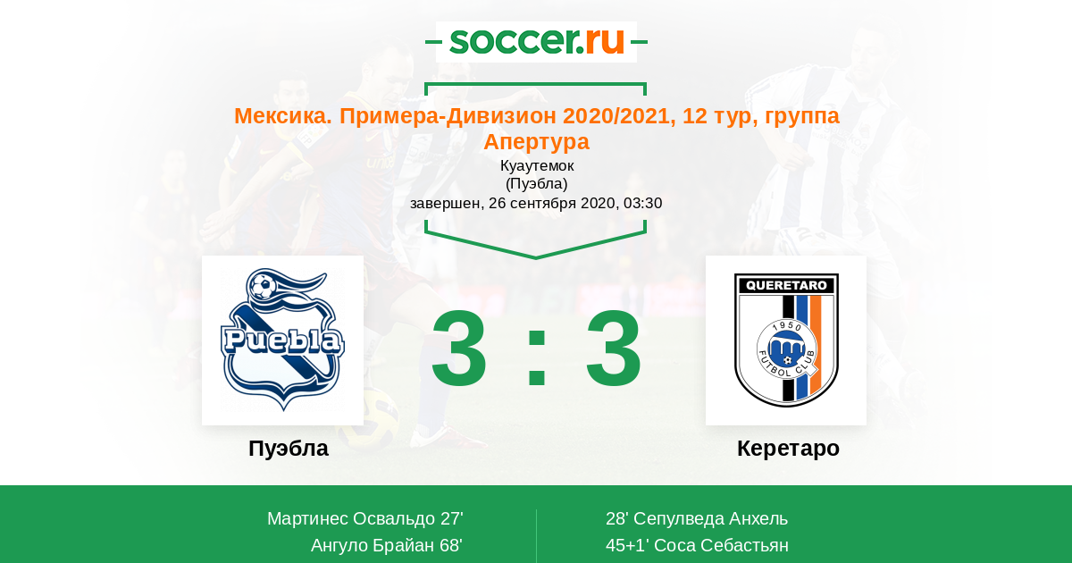 Пуэбла - Керетаро: обзор матча 26 сентября 2020