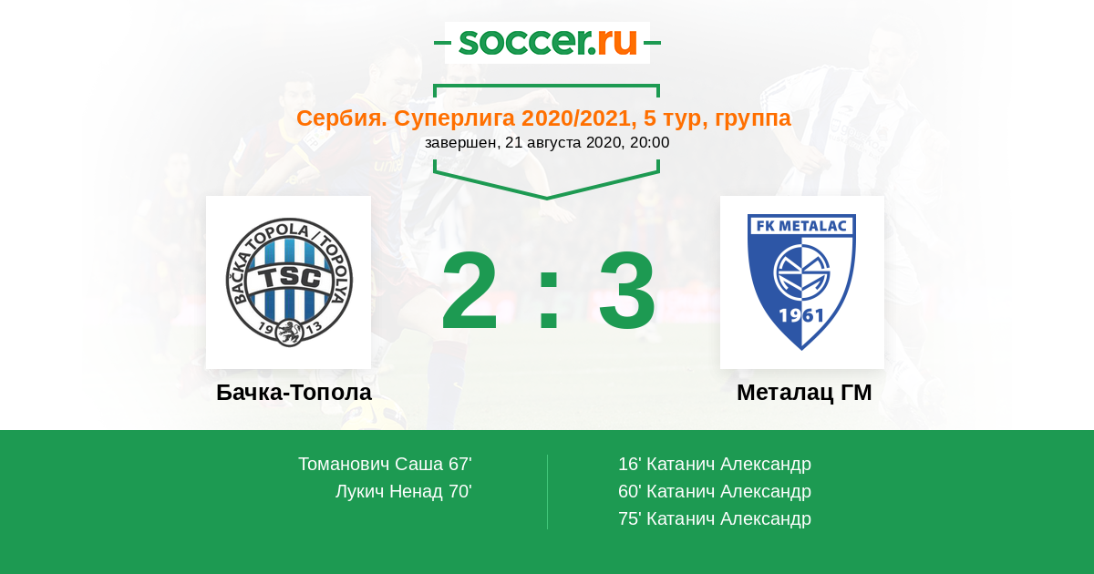Бачка-Топола - Металац ГМ: обзор матча 21 августа 2020