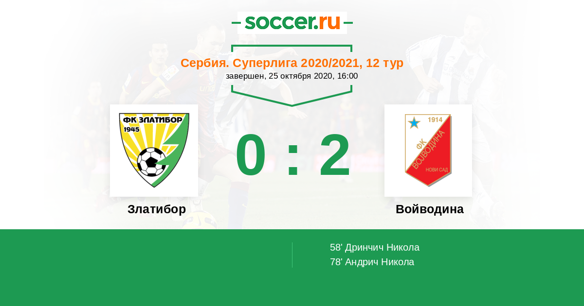 Златибор - Войводина: обзор матча 25 октября 2020
