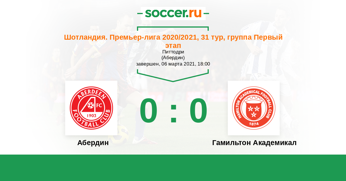 Абердин - Гамильтон Академикал: обзор матча 6 марта 2021
