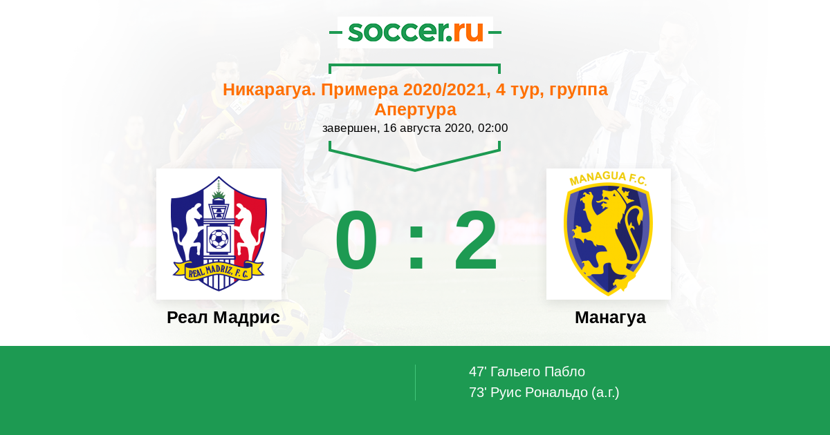 Реал Мадрис - Манагуа: обзор матча 16 августа 2020
