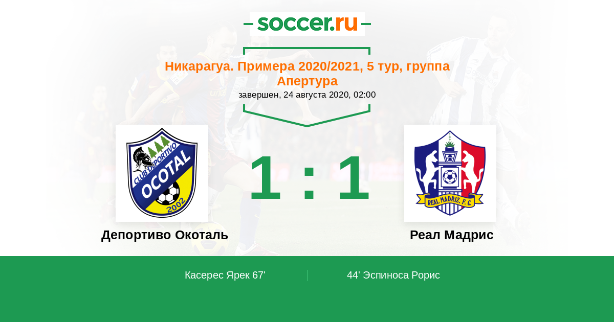 Депортиво Окоталь - Реал Мадрис: обзор матча 24 августа 2020