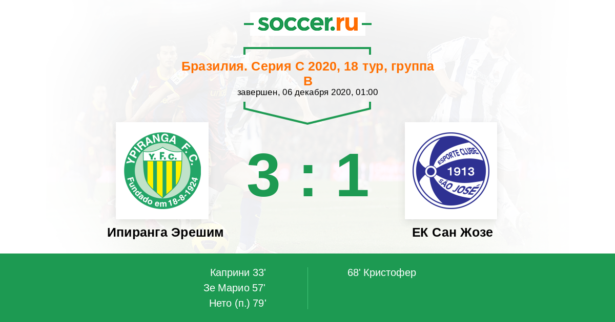 Ипиранга Эрешим - ЕК Сан Жозе: обзор матча 6 декабря 2020