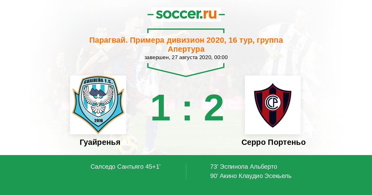Серро Портеньо | 22 | 15 | 5 | 2 | 9 | 37:14 | 50 |