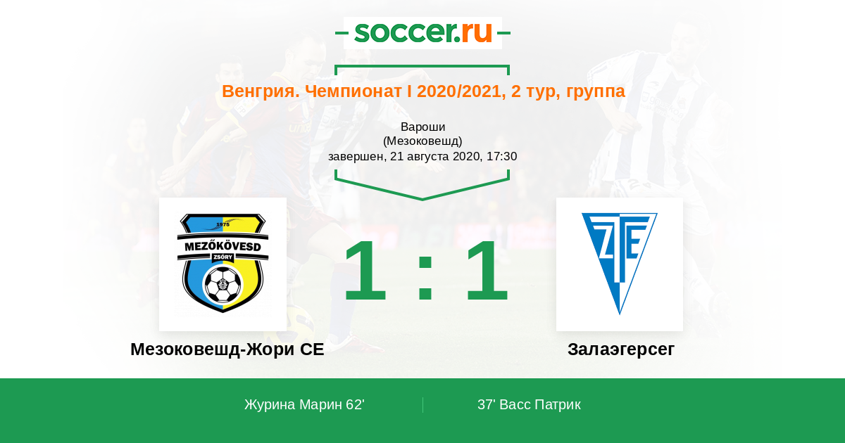 Мезоковешд-Жори СЕ - Залаэгерсег: обзор матча 21 августа 2020
