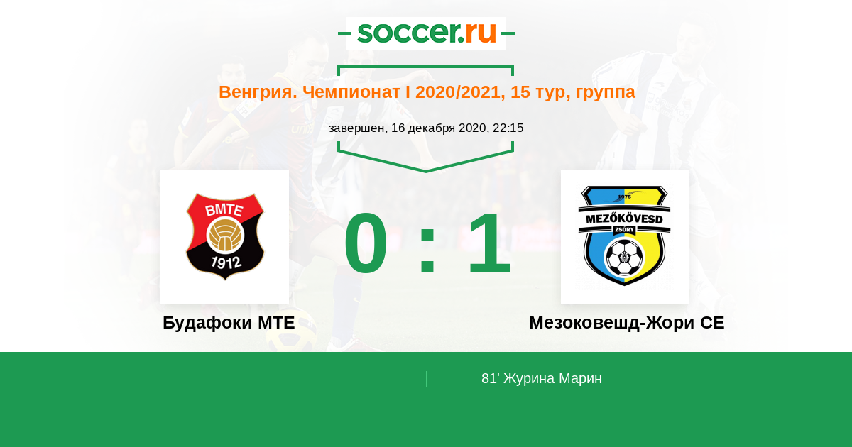 Будафоки МТЕ - Мезоковешд-Жори СЕ: обзор матча 16 декабря 2020