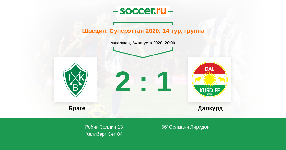 Браге - Далкурд: обзор матча 24 августа 2020