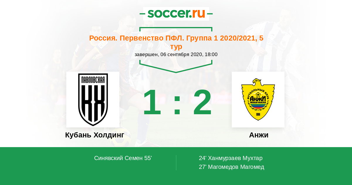 Кубань Холдинг - Анжи: обзор матча 6 сентября 2020