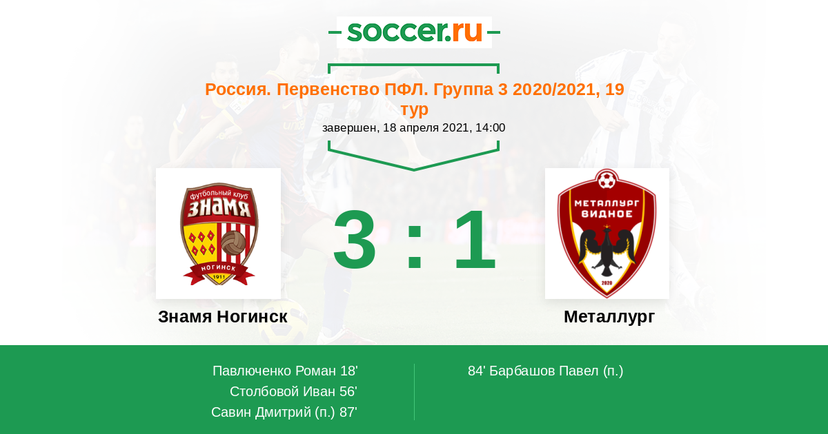 | 9. | Знамя | 30 | 11 | 10 | 9 | 6 | 44:38 | 43 |