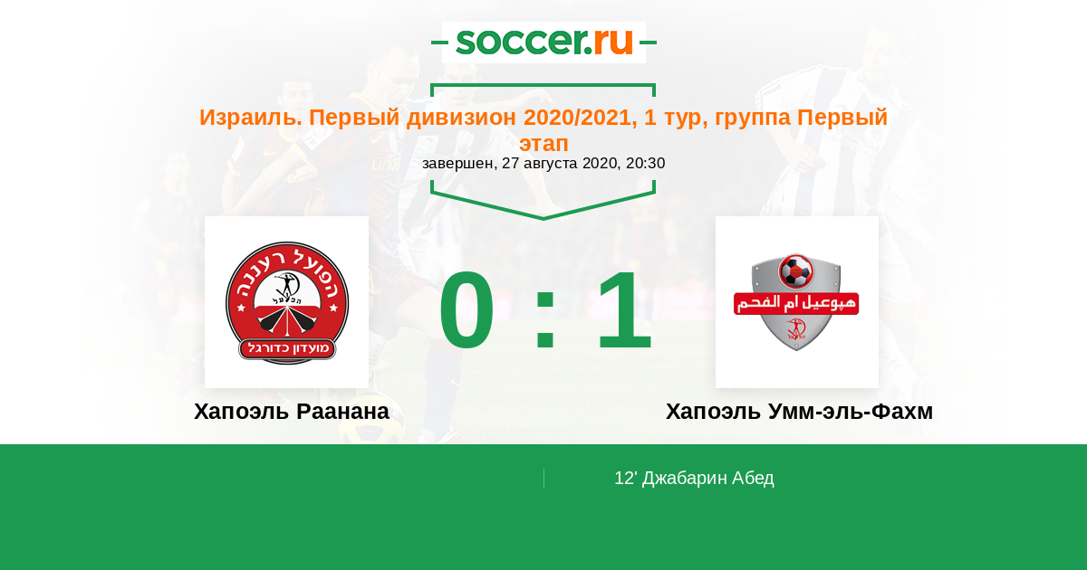 Хапоэль Раанана - Хапоэль Умм-эль-Фахм: обзор матча 27 августа 2020