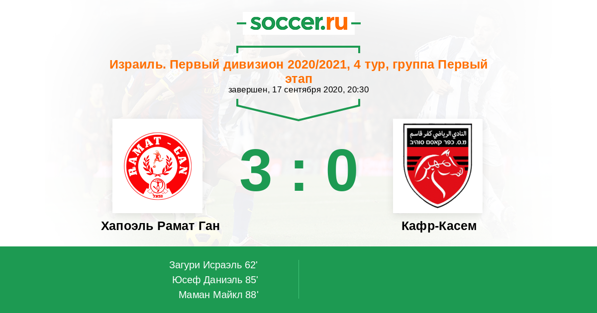 Хапоэль Рамат Ган - Кафр-Касем: обзор матча 17 сентября 2020