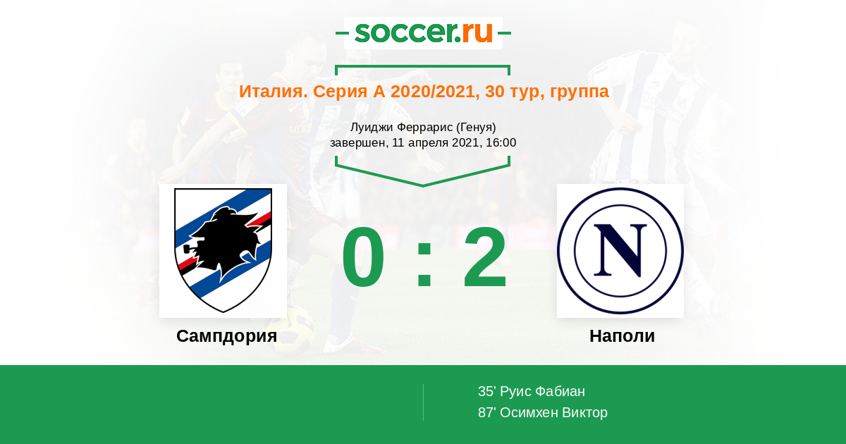 Сампдория - Наполи: обзор матча 11 апреля 2021