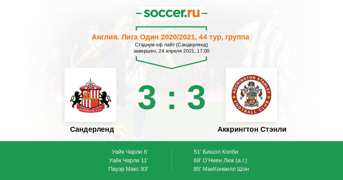 Сандерленд - Аккрингтон Стэнли: обзор матча 24 апреля 2021