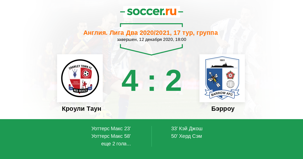 Кроули Таун - Бэрроу: обзор матча 12 декабря 2020