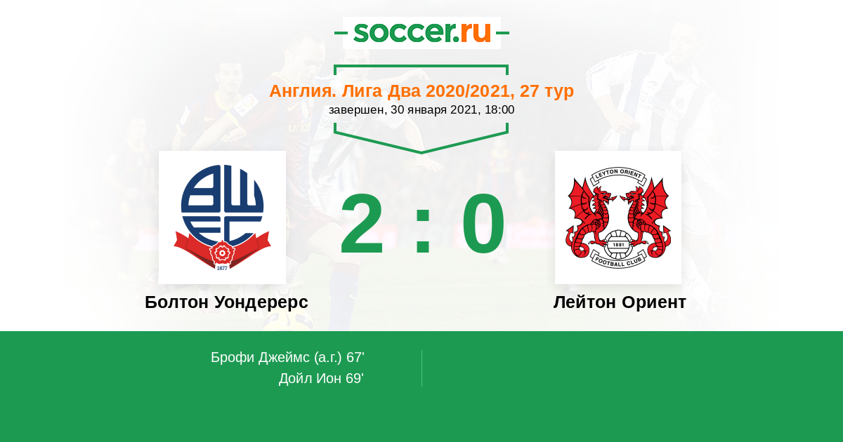Болтон Уондерерс - Лейтон Ориент: обзор матча 30 января 2021