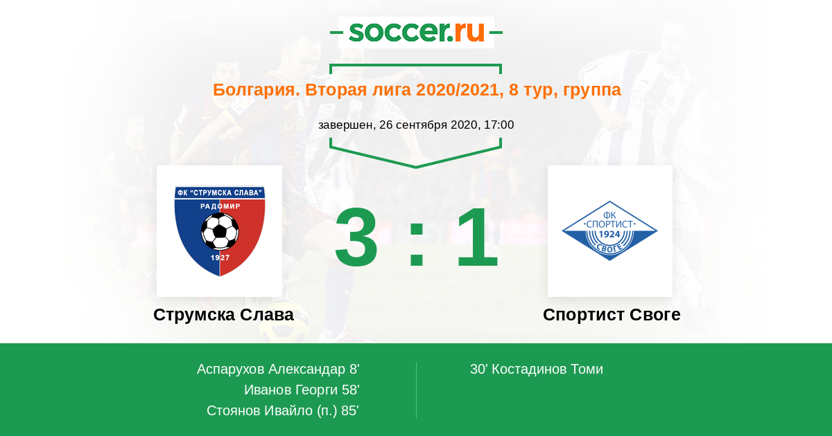 Струмска Слава - Спортист Своге: обзор матча 26 сентября 2020