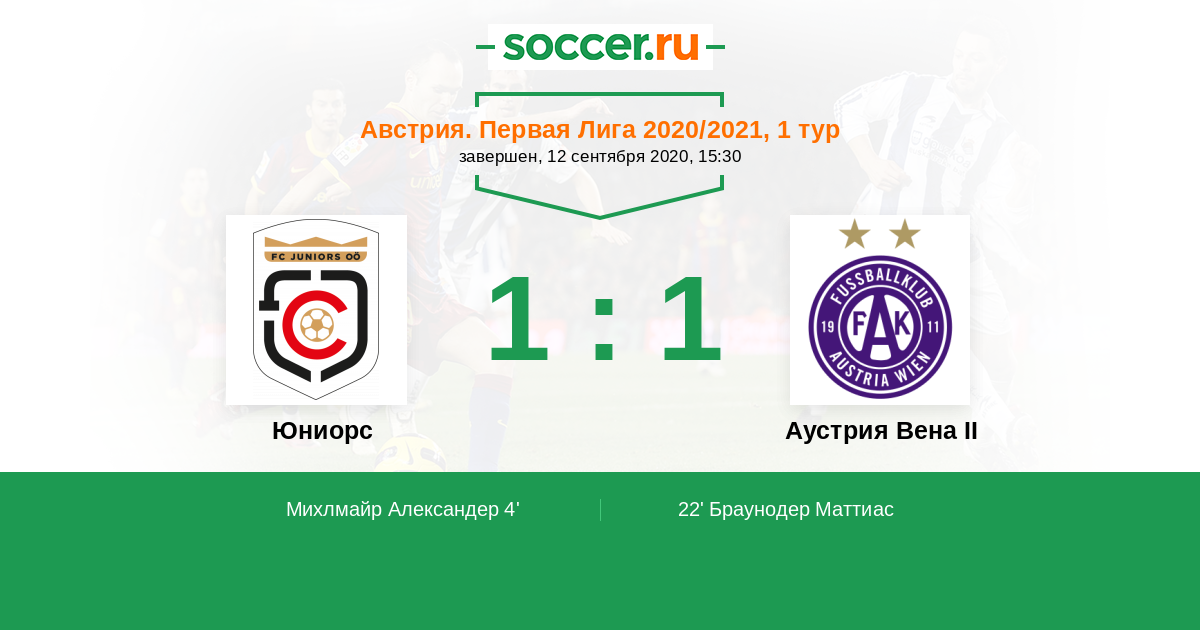 Юниорс - Аустрия Вена II: обзор матча 12 сентября 2020