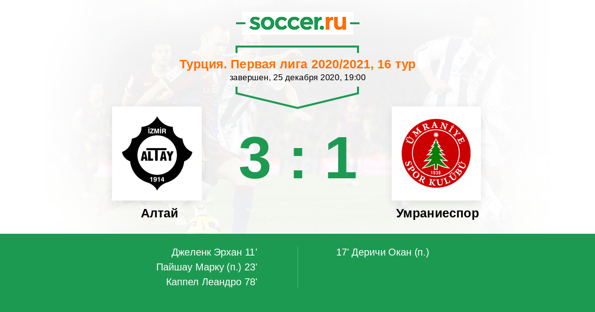 Алтай - Умраниеспор: обзор матча 25 декабря 2020