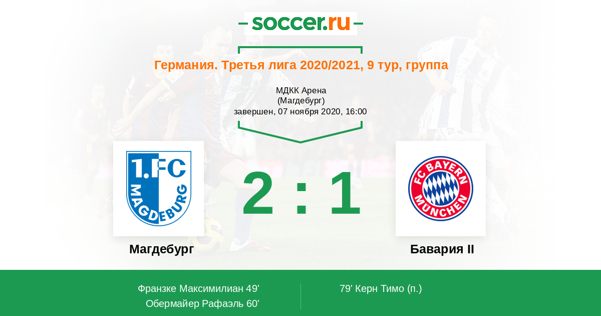 Магдебург - Бавария II: обзор матча 7 ноября 2020