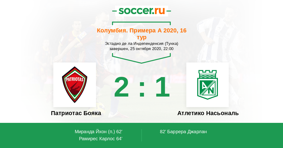Патриотас Бояка - Атлетико Насьональ: обзор матча 25 октября 2020