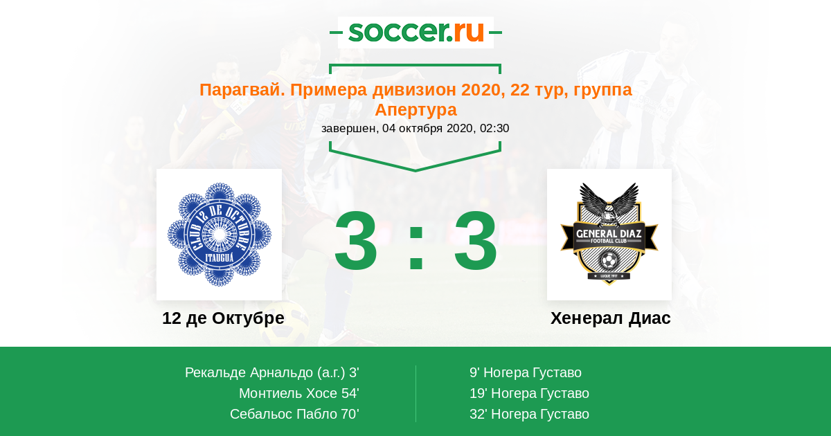 12 де Октубре - Хенерал Диас: обзор матча 4 октября 2020