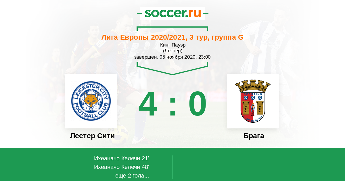 Лестер Сити | 6 | 4 | 1 | 1 | 3 | 14:5 | 13 |