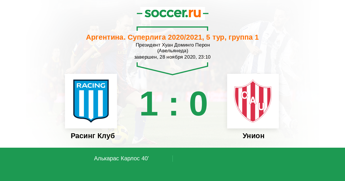 Расинг Клуб - Унион: обзор матча 28 ноября 2020