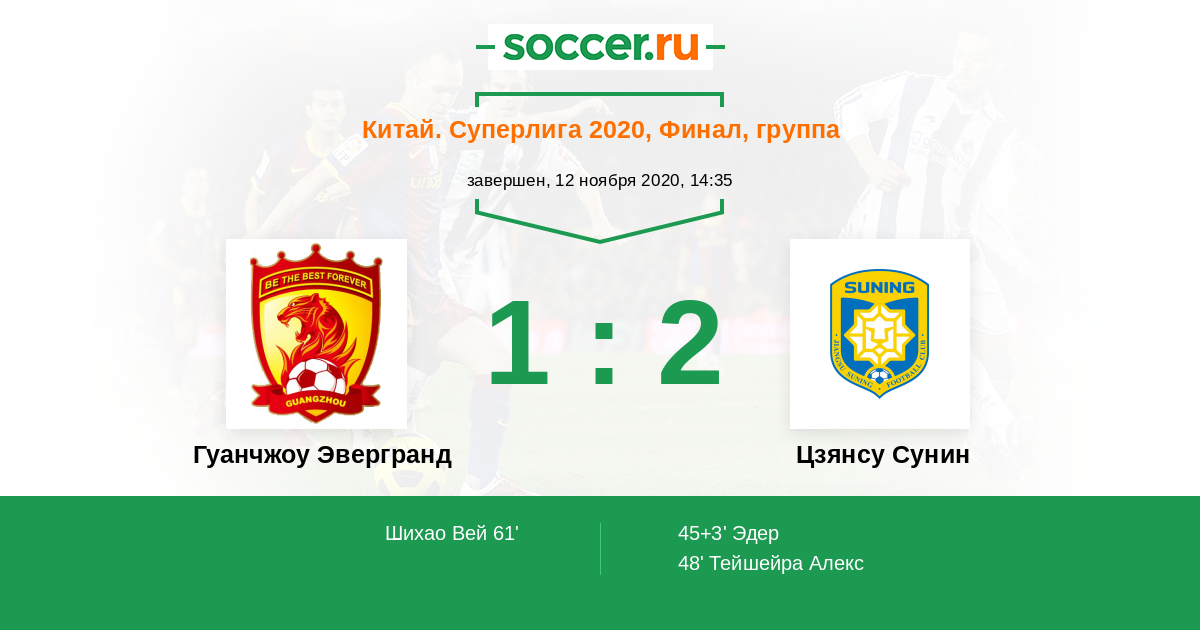 Гуанчжоу Эвергранд - Цзянсу Сунин: обзор матча 12 ноября 2020