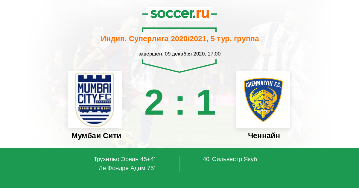 Мумбаи Сити - Ченнайн: обзор матча 9 декабря 2020