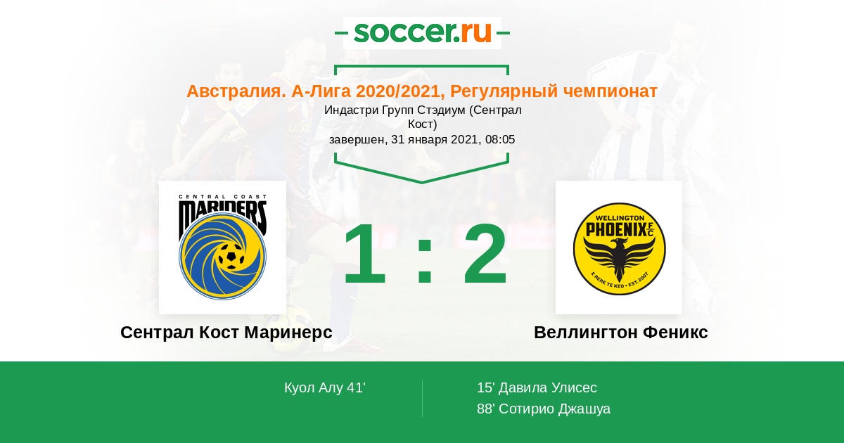 Сентрал Кост Маринерс - Веллингтон Феникс: обзор матча 31 января 2021