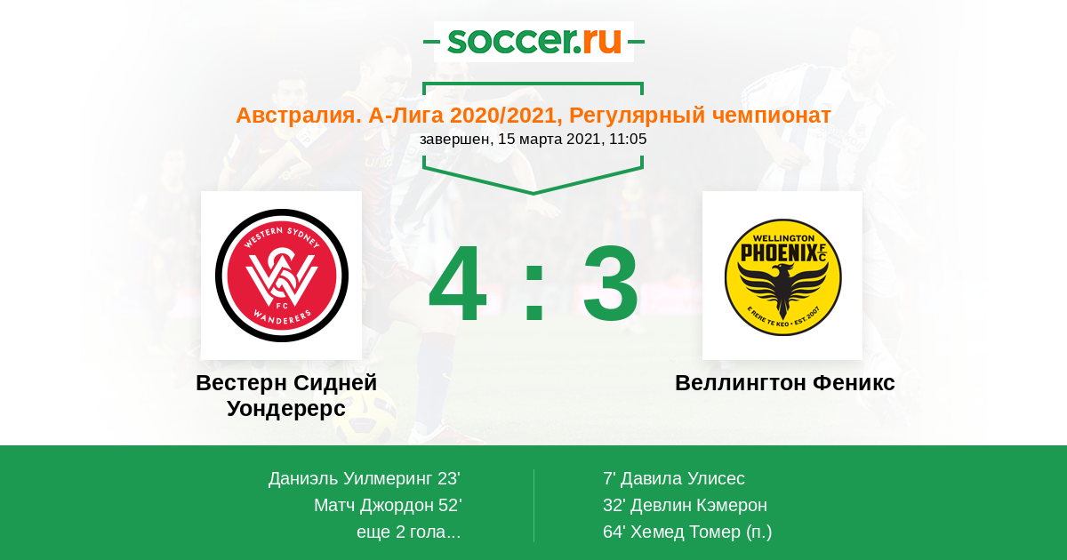 Вестерн Сидней Уондерерс - Веллингтон Феникс: обзор матча 15 марта 2021