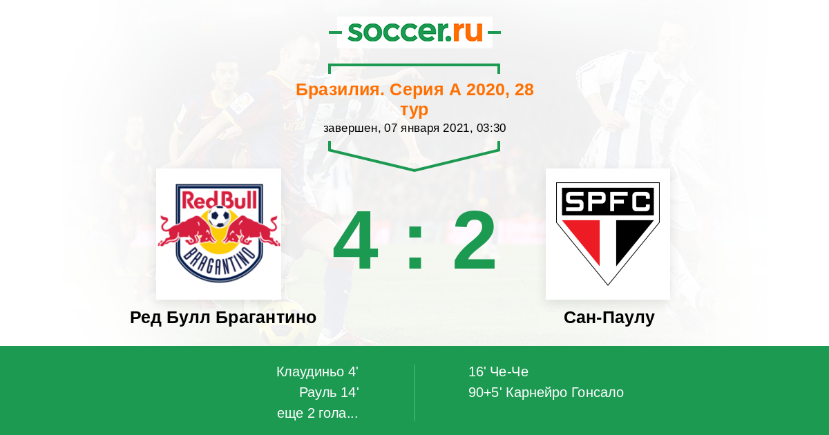 Ред Булл Брагантино - Сан-Паулу: обзор матча 7 января 2021