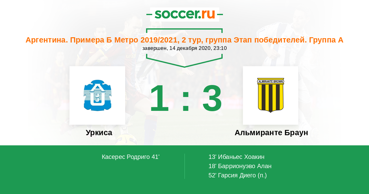 Уркиса - Альмиранте Браун: обзор матча 14 декабря 2020