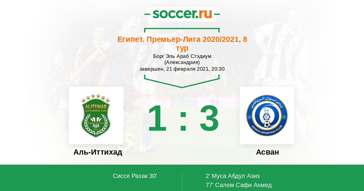 Аль-Иттихад - Асван: обзор матча 21 февраля 2021