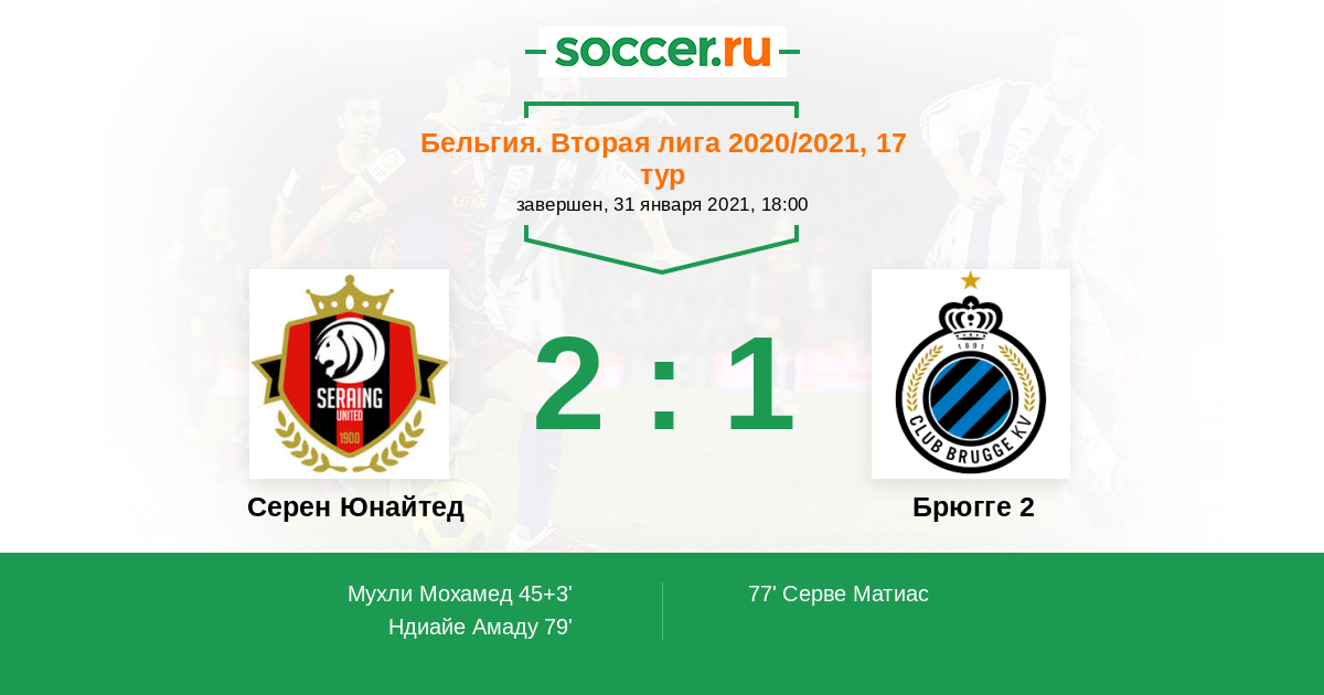 Серен Юнайтед - Брюгге 2: обзор матча 31 января 2021